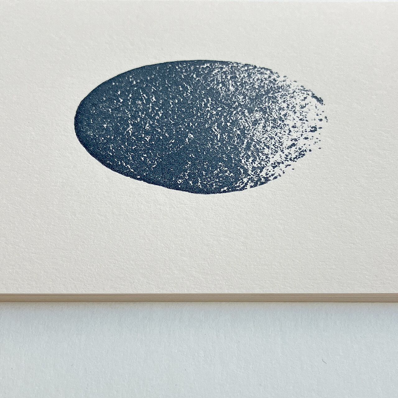 川原の石ころ。ざらざらゴツゴツとした質感と模様を凸版印刷で紙に写しています。