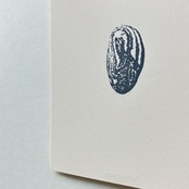 川原の石ころ。年輪のように縞が刻まれた不思議なかたちを凸版印刷で紙に写しています。